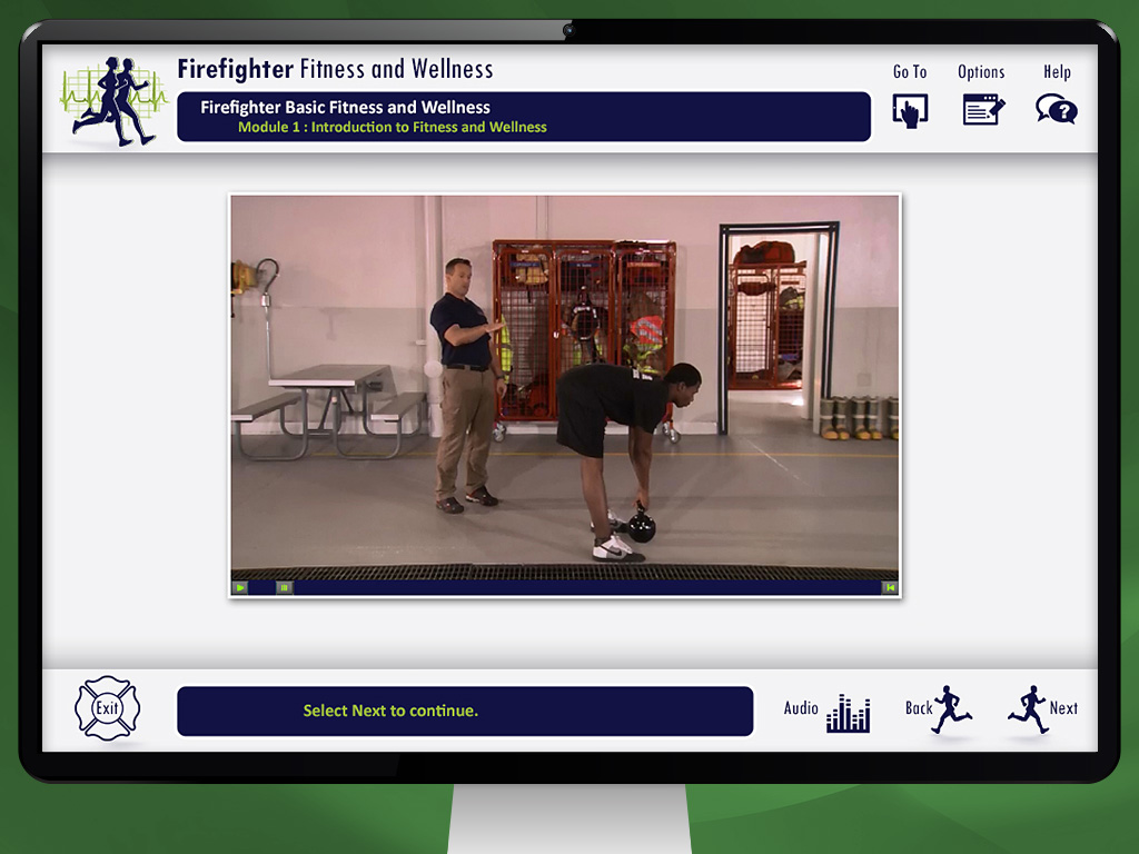 I designed and developed this award-winning interface that received the "Horizon Interactive Bronze Medal Award in the category of Training/e-Learning Websites" for the "U.S. Air Force: Firefighter Fitness and Wellness Training Program" (web-based training program). This design was chosen out of several design entries within the creative team department.